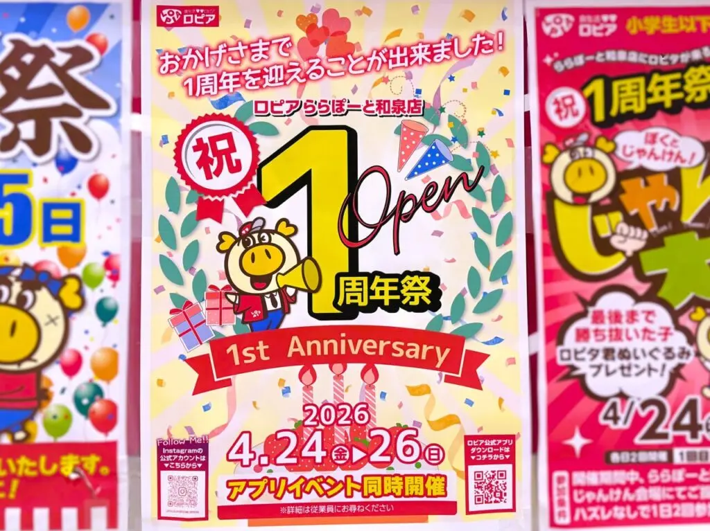 同じくららぽーと和泉内のロピア ららぽーと和泉店では、4月24日(金)から26日(日)まで1周年祭を開催予定。